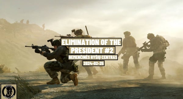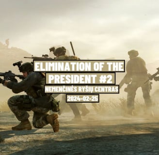 Šiame žaidime turėjome svarbią misiją - pristatyti prezidentą į metro ir išgabenti traukiniu 16:30, tuo tarpu varžovai bandė pagrobti prezidentą ir įkalinti jį kalėjime. Tam, kad sėkmingai įvykdytume savo užduotį, ir surinkti papildomų taškų, kas valandą per 15 minučių turėjome išskraidinti po vieną specialią dėžę sraigtasparniu iš specialiai paskirtų vietų. Iš viso buvo 4 tokios dėžės, o lokacijos iš kurių buvo galima gabenti - dvi. Priešininkų užduotis buvo užkirsti mums kelią, perimti dėžes ir pervežti jas savo transportu. Išskraidinimo laikai buvo nustatyti: 12:45-13:00, 13:45-14:00, 14:45-15:00, 15:45-16:00. Tai buvo labai svarbūs laiko intervalai, kuriuose reikėjo veiksmingai ir greitai veikti. Po to, kai visos dėžės buvo išskraidintos, o mūsų komanda persigrupavo, išsirikiavome L formos kovine grandimi ir pradėjome metro šturmą. Šis metro buvo saugomas visą žaidimą, nes priešo pajėgos norėjo sutrikdytį mūsų misiją. Visas žaidimas buvo kupinas įtampos ir adrenalino. Mūsų komanda veikė koordinuotai ir sugebėjo įveikti visus iššūkius, su kuriais susidūrėme. Žaidimo pabaigoje mums pavyko sėkmingai pristatyti prezidentą į metro ir išgabenti traukiniu, tuo tarpu varžovams nepavyko pasiekti savo tikslo - pagrobti prezidentą ir jį įkalinti kalėjime.